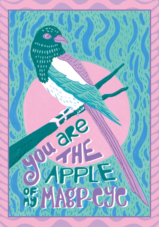 Florence the Magpie 'Apple of my Magp-eye' Greetings Card – the punniest way to show you care